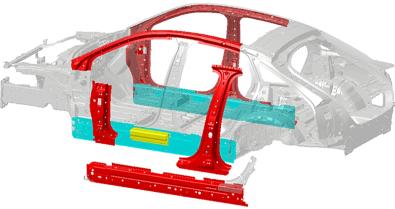 يعكس جسم aS الأبيض المصنوع من مزيج الفولاذ والألومنيوم من خلال اختيار المواد تماما مفهوم التصميم عالي الأداء وخفيف الوزن. الاستخدام المعقول لسبائك الألومنيوم المختلفة والمواد الفولاذية مثل سبائك الألومنيوم المصبوب الفراغي العالي الضغط المتكامل، والفولاذ المشكل على الساخن 1500 ميجا باسكال، والألمنيوم المستخدم في صناعة الطائرات، والفولاذ المتطور فائق القوة وإلخ، الذي جعل نسبة سبائك الألومنيوم في السيارة بأكملها تصل إلى 46.6 بالمائة، وصلت نسبة الفولاذ المتطور عالي القوة والفولاذ المشكل على الساخن إلى 33.8 بالمائة، ووصل معامل الجسم الخفيف الوزن إلى 1.6 (مع البطارية)، يصل معامل الجسم بدون بطاريات إلى 2.1، مما يبرز المزايا من الفولاذ والألمنيوم ليضع أساسا متينا لجسم خفيف الوزن.