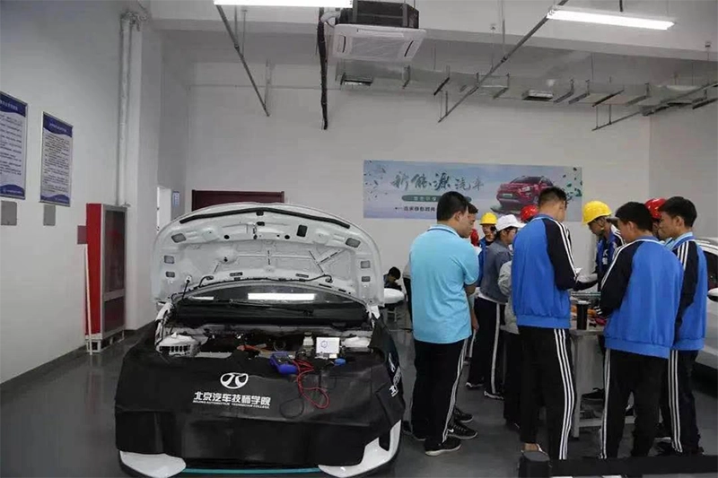 أطلقت بايك طريقة مبتكرة للتخفيف من حدة الفقر تجمع بين تدريب بايك والتدريب المحلي والتوظيف التوجيهي، وتوفير الموارد التعليمية والتدريبية للطلاب المسجلين من الأسر الفقيرة لتحسين مهاراتهم وقابليتهم للتوظيف. وقعت بايك اتفاقية مساعدة شراكة مع مركز Fuping للتعليم المهني، حيث تبرعت بـ 75 سيارة وبعض المرافق التعليمية الأخرى بقيمة إجمالية قدرها 10.81 مليون يوان؛ بدأت بايك في بناء قاعدة تدريب ما بعد البيع للسيارات BAIC -Hetian وقاعدة للتدريب على المهارات، وقدمت دورات تدريبية لأكثر من 20 تقنيا من تسع مدارس مهنية في تسع بلاد\مدن في Hetian، بما في ذلك Hetian Technical College، وحتى أكتوبر 2020، تبرعت بإجمالي من أكثر من 30 سيارة كهربائية نقية لغرض التدريس، وأنشأت 13 دورة تدريبية متعلقة بالسيارات، وأرسلت ثلاثة طلاب متخصصين في صناعة السيارات للتدريس في Hetian.