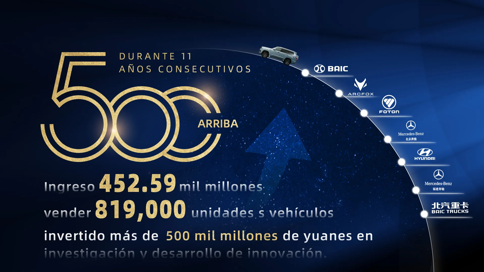 El 2 de agosto de 2023, se publicó oficialmente la lista de las 500 empresas más importantes del mundo de la revista Fortune. Grupo de BAIC , una fuerza clave en la industria automotriz de China, ha sido seleccionada durante 11 años consecutivos, ocupando el puesto número 193 en la lista con un ingreso operativo de 4525.9 mil millones de yuanes.